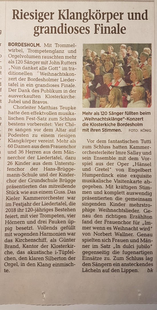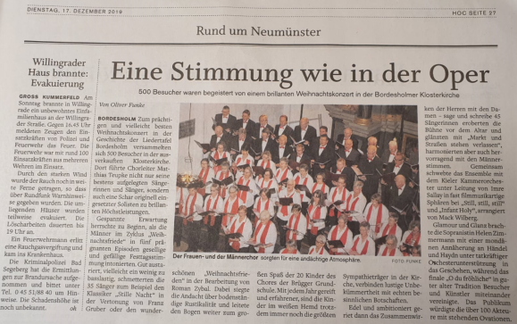 Weihnachtskonzert 2019 - Kieler Nachrichten vom 17.12.2019