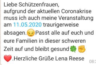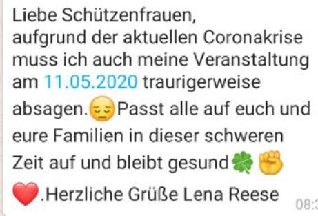 Aus diesem Grund können wir Euch derzeit auch noch keinen Terminplan für die Veranstaltungen im kommenden Jahr zukommen lassen. Sicher ist, dass die erste Schützenversammlung im Januar 2021 und das Grünkohlessen im Februar 2021 aufgrund der aktuellen Lage nicht stattfinden können. Gleiches gilt auch für die Mitgliederversammlung, die wir aber zu einem späteren Zeitpunkt im Jahr 2021 nachholen werden.
