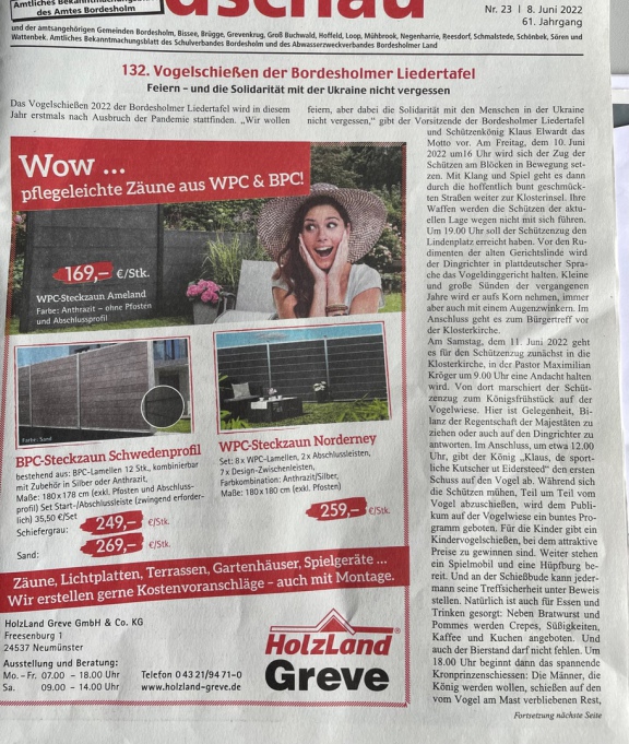 Liebe Mitglieder, Sänger und Schützen,