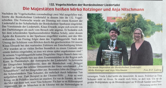 Das neue Königspaar der Bodesholmer Liedertafel v. 1868 eV