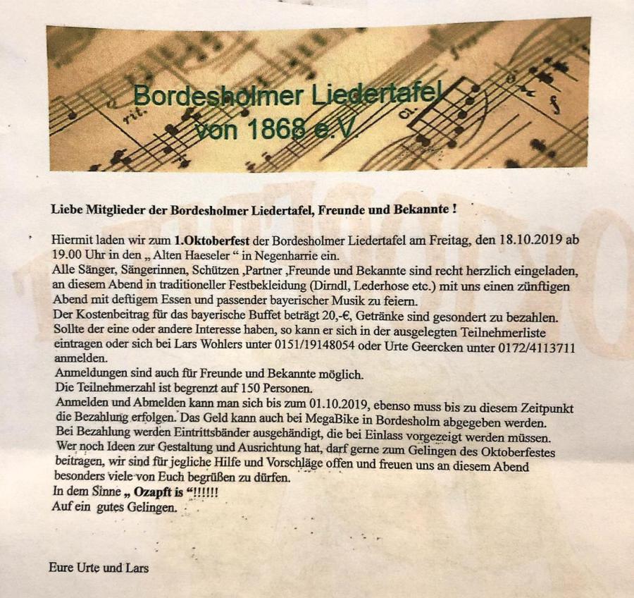 Hier ein aktueller Hinweis zu dem geplanten Oktoberfest: