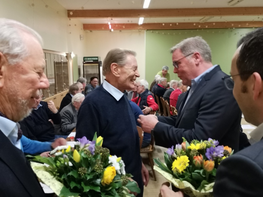 Ernst Schlotfeldt erhält die Ehrung für 60 Jahre aktive Mitgliedschaft in der Bordesholmer Liedertafel.