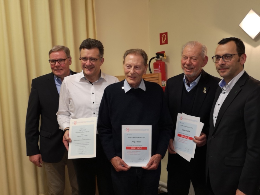 Die Ehrung der langjährigen Mitglieder, hier der Schützen, erfolgt traditionell beim Schützenfest auf der Vogelwiese. In diesem Jahr sind das Ernst Schlotfeld für 60 Jahre als aktiver Schütze, Detlef Bracker - 50 Jahre, Burkhard Michaelis – 30 Jahre, Mario Nitschmann - 15 Jahre. Die Sänger hatten keine Ehrung zu verzeichnen.