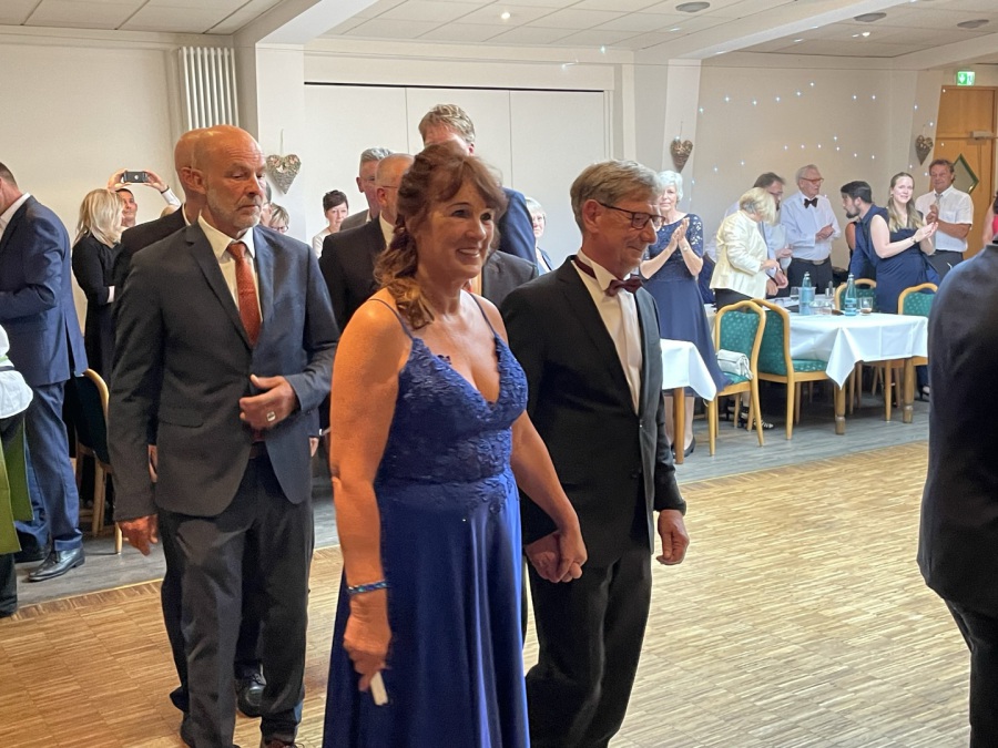 altes und neues Königspaar beim Einmarsch in den Saal