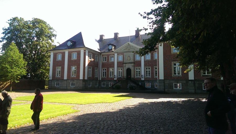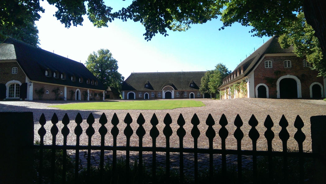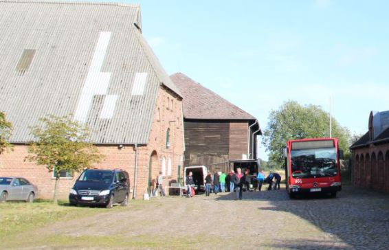 Nach einem kleinen Frühstück vor der Kirche ging es weiter zum Gut Schierensee. Die 94 Mitreisenden wurden in drei Gruppen aufgeteilt, die dann durch die Ställe, den Garten und das Herrenhaus von Brillenkönig Fielmann geführt wurden.