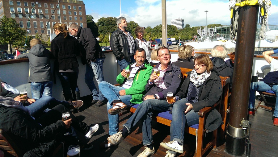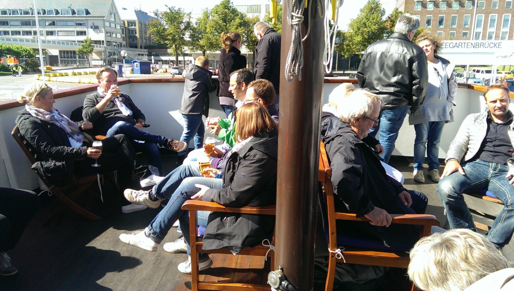 Nach dieser überaus eindrucksvollen Besichtigung ging es weiter nach Kiel in den Hafen. Dort wartete schon das Museumsschiff "Stadt Kiel" mit Kaffee und anderen Getränken auf uns.