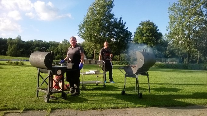 Da es langsam dunkel wurde und uns der Sinn nach etwas Herzhaftem stand, sahen wir mit Freude und Erleichterung, dass ein großer Grill aufgebaut wurde und auch andere Zutaten für ein deftiges Abendessen angeliefert wurden.