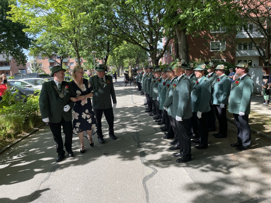 Der König schreitet die Front ab und prüft die Kleiderordnung. Sehr zum Vergnügen aller.